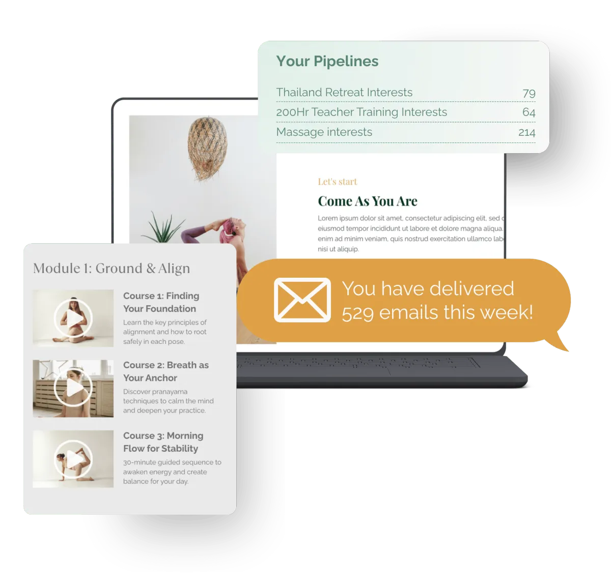 From marketing automation to business management, we provide everything you need to build and scale your wellness retreat business.