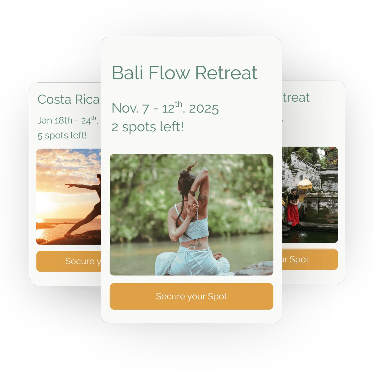 Founded by a formal retreat leader and yoga teacher, we understand the unique challenges of building a wellness business.