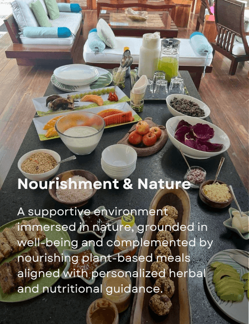 This retreat is designed entirely around you. From nourishing plant-based cuisine with personalized herbal and nutritional guidance, to therapeutic massage, and peaceful private accommodations, every detail supports your healing journey.